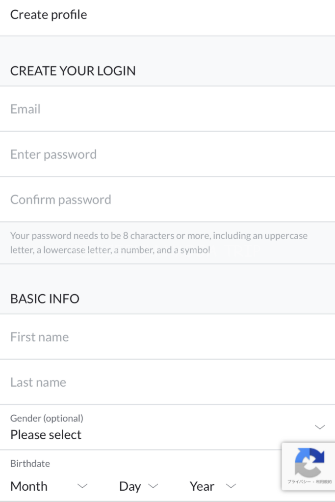 - Enter password (大文字、小文字、数字、記号を含む8文字以上で作成する)