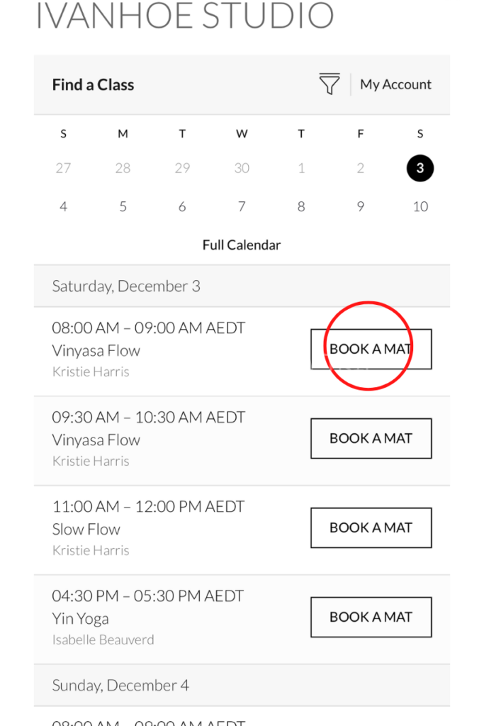 通いたいクラスのBOOK A MATをクリックし、次の画面でNEXTをクリック
