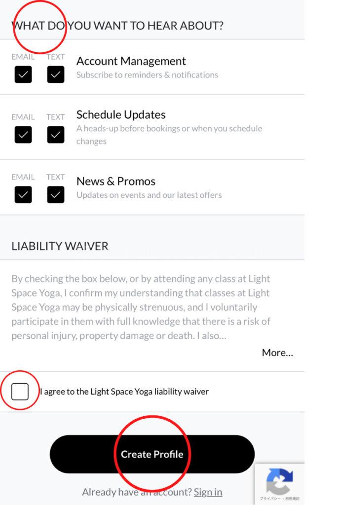 免責同意書 に同意するならレ点を入れてCreate Profileをクリック