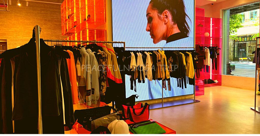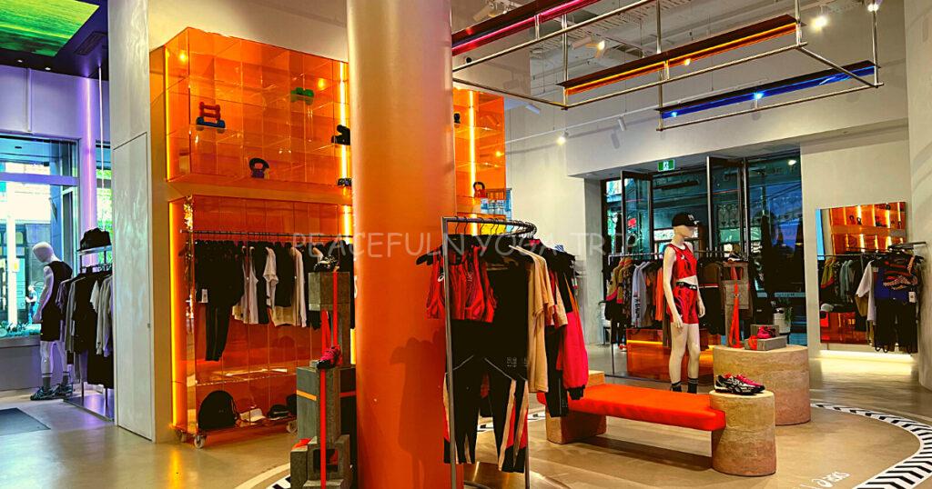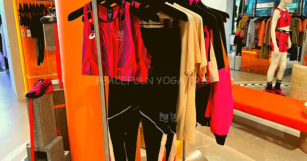 ヨガバック(ヨガマットが収納できるバック)、ソックス、シューズ、キャップ、スカーフなども揃っておりクールなデザインが多い印象でした。