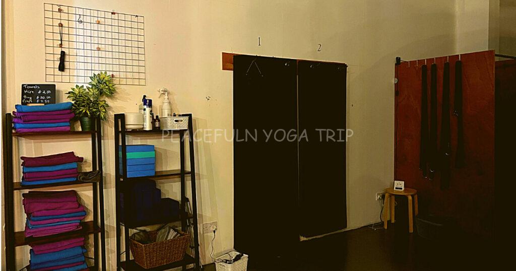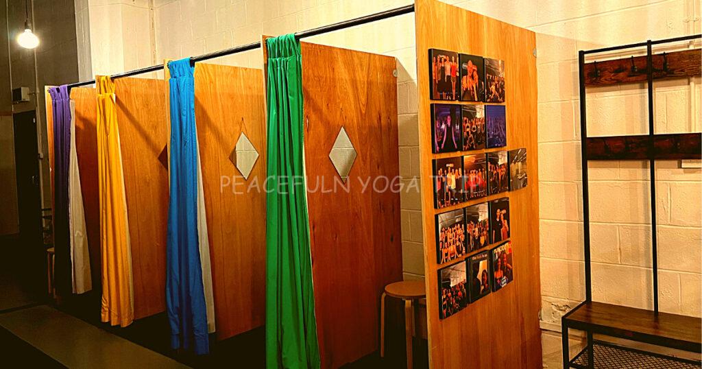 可愛いカーテンがついた更衣室もありますが、生徒さんは着替えずに着用してきたヨガウェアでそのまま帰宅する方がほとんどでした。