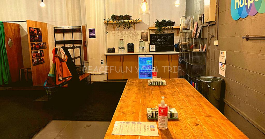 階段を登り1階(日本でいう2階)へ上がるといくつか部屋があり、こちらがHotpod Yoga Glasgowの入り口です。開始時間15分前にならないと入店できませんのでご注意を。