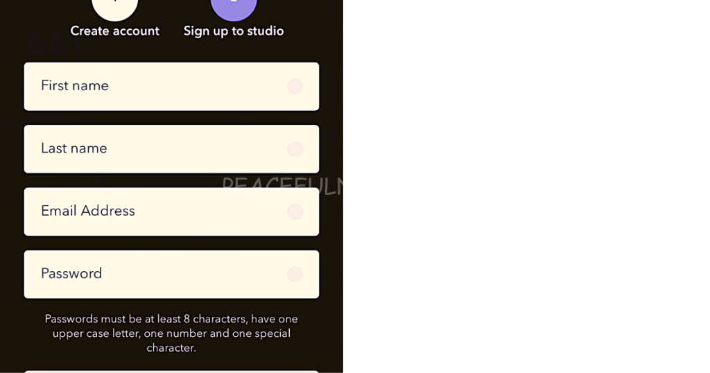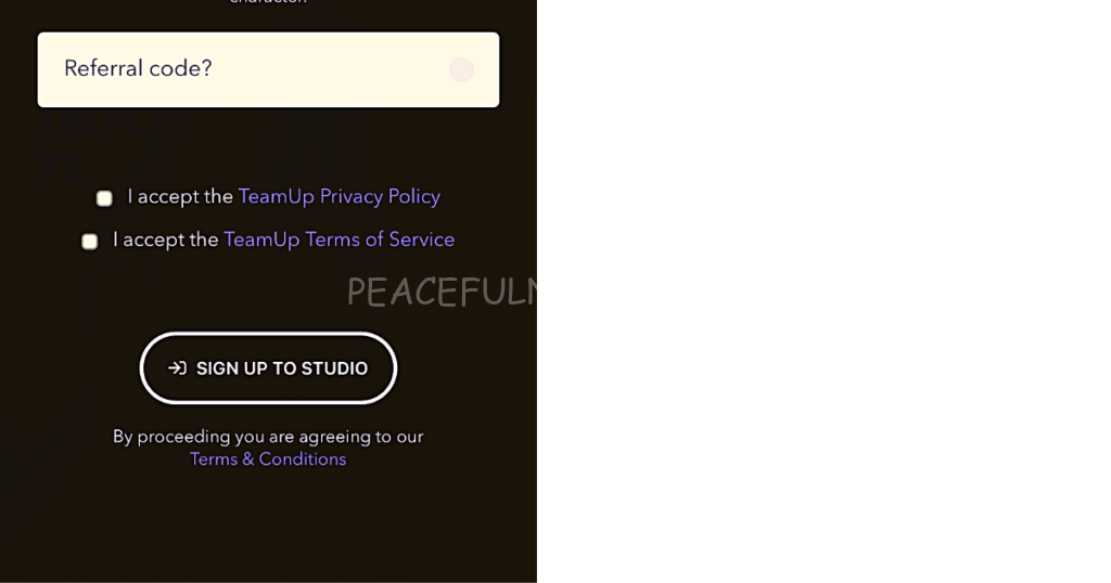 プライバシーポリシー、利用規約に同意する場合は2箇所へレ点を入れ、SIGN UP TO STUDIOをクリック。