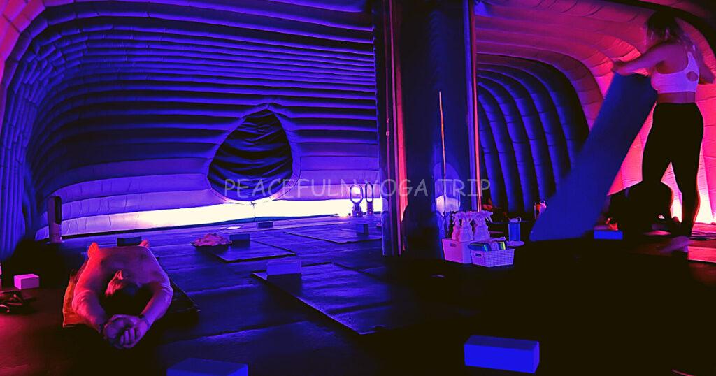 Hotpod内で行う異空間でのヨガ体験はリラックスができる場所としてぜひおすすめしたい場所です。