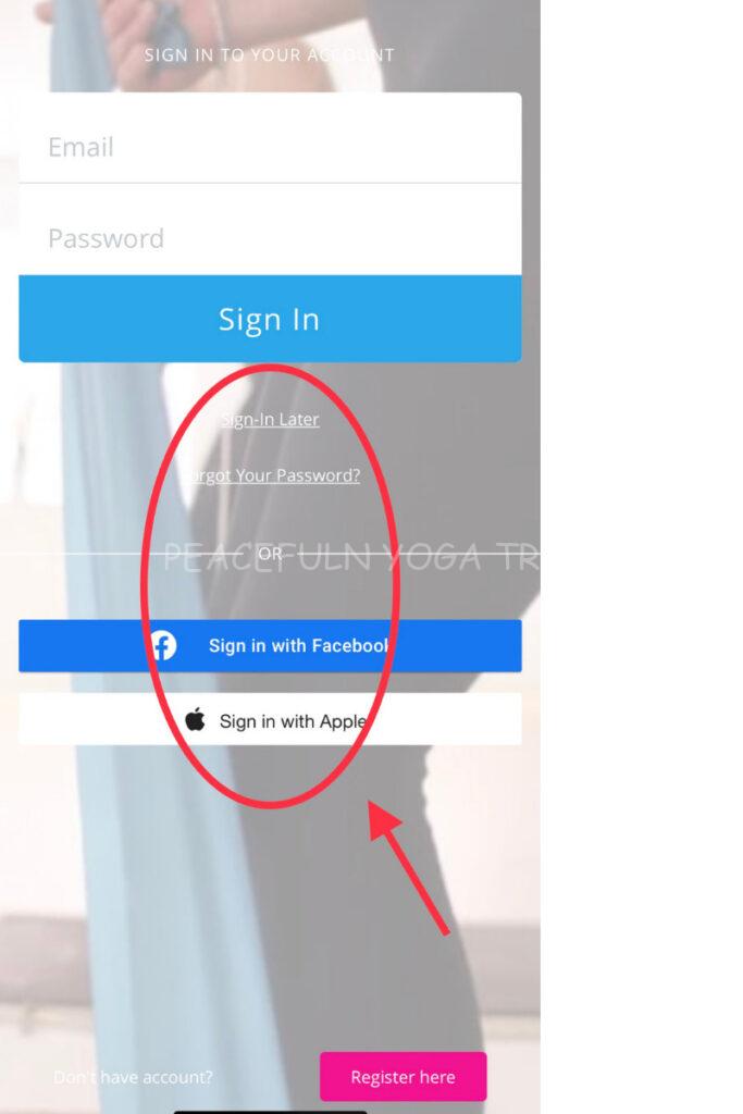 アプリをインストール後下記の画面が出てきます。FacebookやApple から登録する方はどちらかをクリック