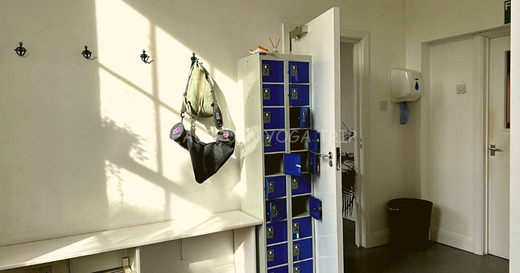 奥に入ると、ヨガスタジオ、荷物置き場、ロッカー(鍵付き)があります。