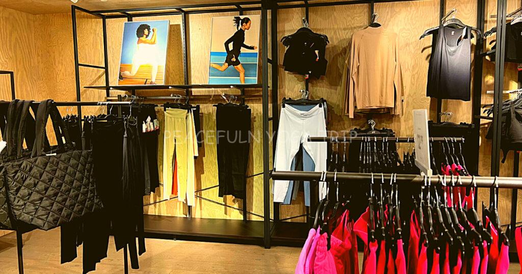 最上階にあるスポーツウェア売り場ではレギンス、トップス、Tシャツなどスポーツをする上で必須な商品が揃います。