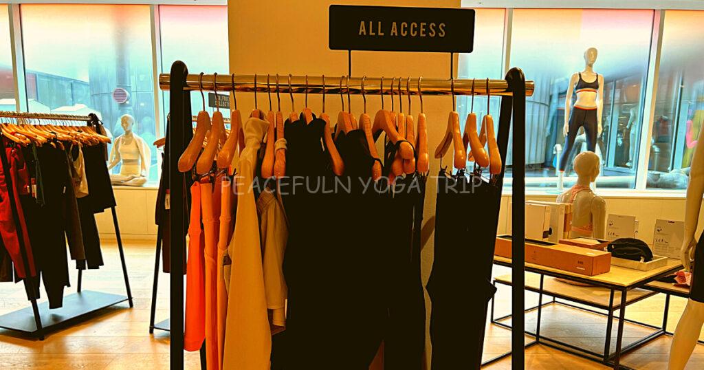 ニューヨークに本拠地を置くALL ACCESSは、ストレッチ素材のスポーツウェアブランドです。店内では単色のみでしたが、オンラインでは柄物や発色の良いカラー商品もありますよ。
