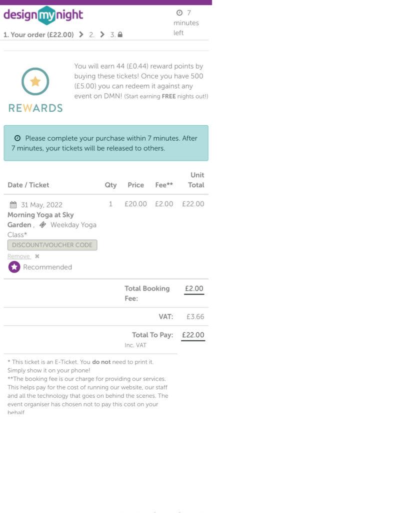 £2の手数料が追加された合計金額が出てきますので予約内容が正しいことを確認します