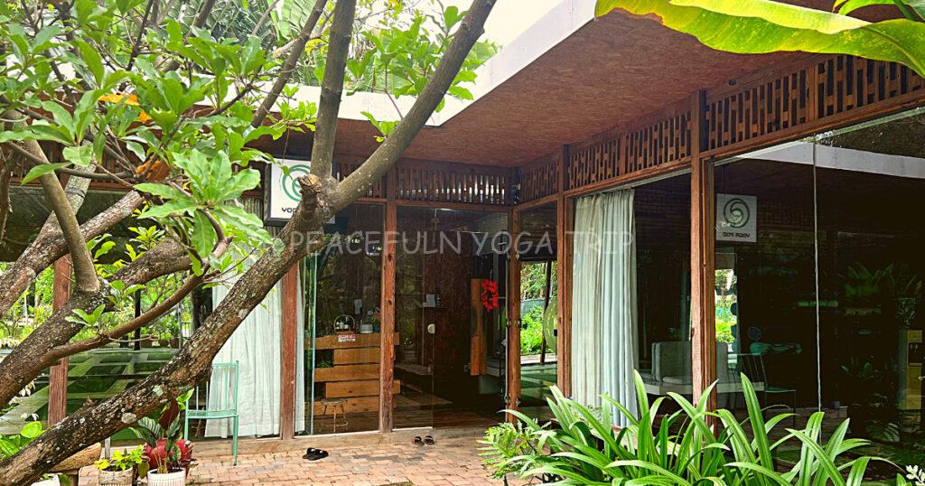 スタジオ周辺はリトリートに来たかのような自然を感じるお洒落エリアとなっており、カフェ、レストランが数軒あるエリアにヨガスタジオがありました。